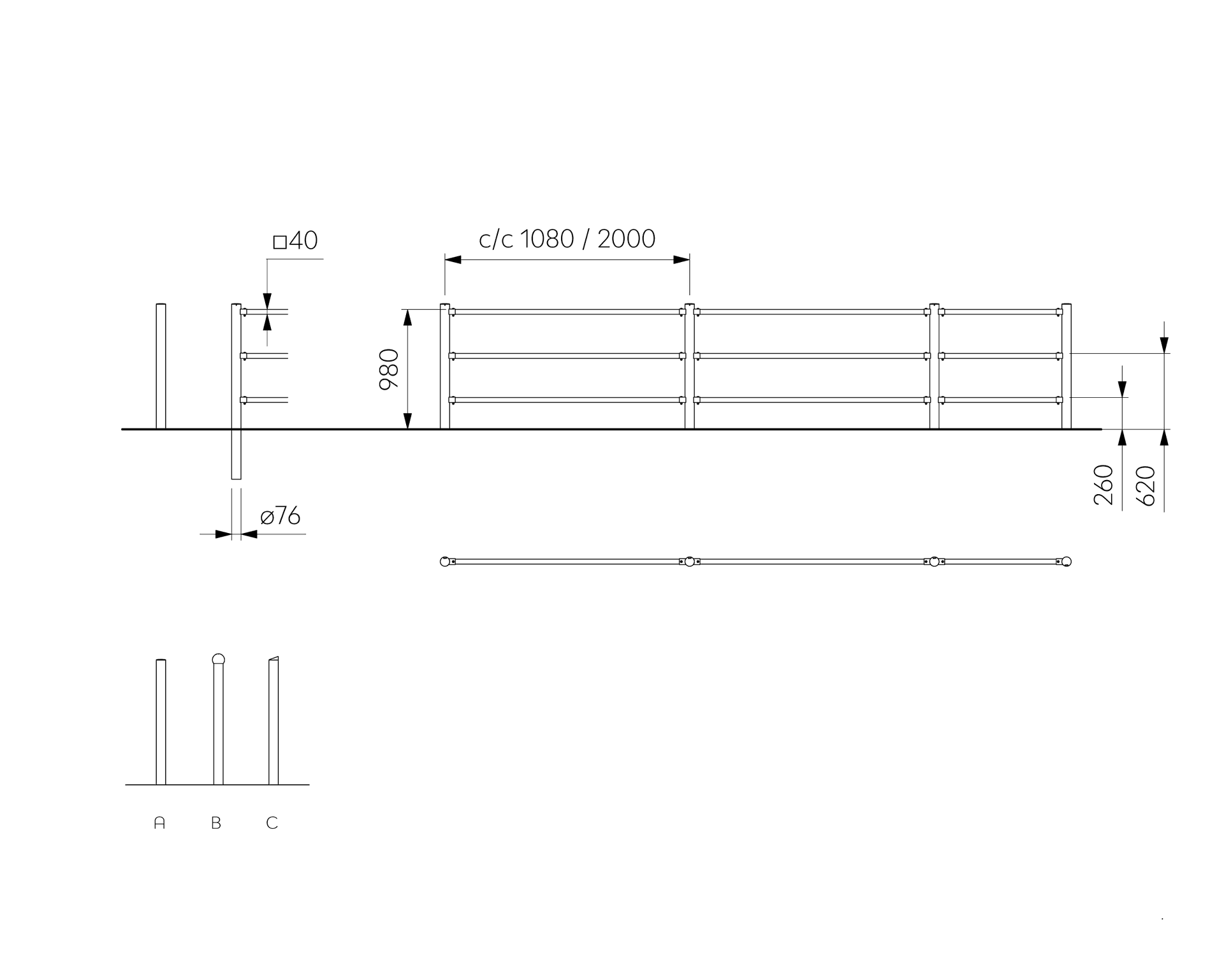 - Available in several post top variants: flat/ball/diagonal