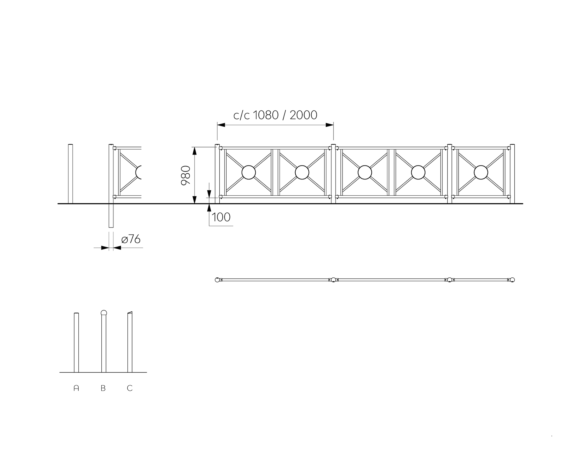 - Available in several post top variants: flat/ball/diagonal